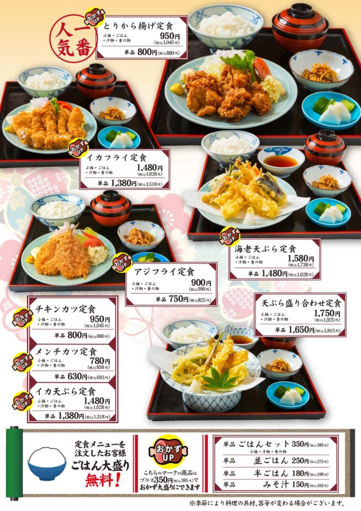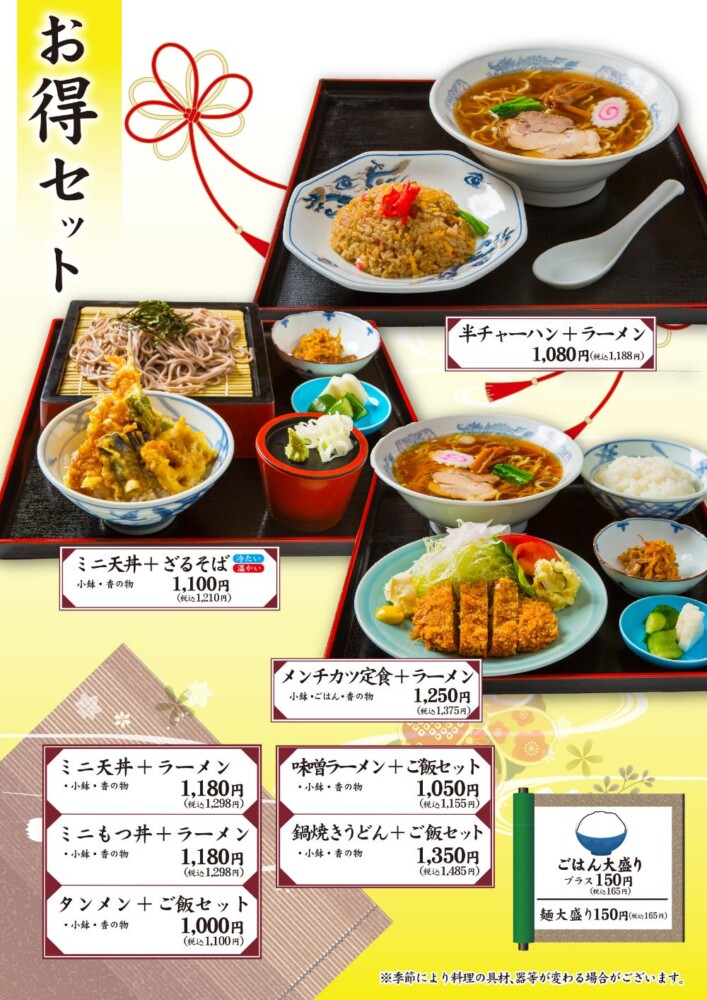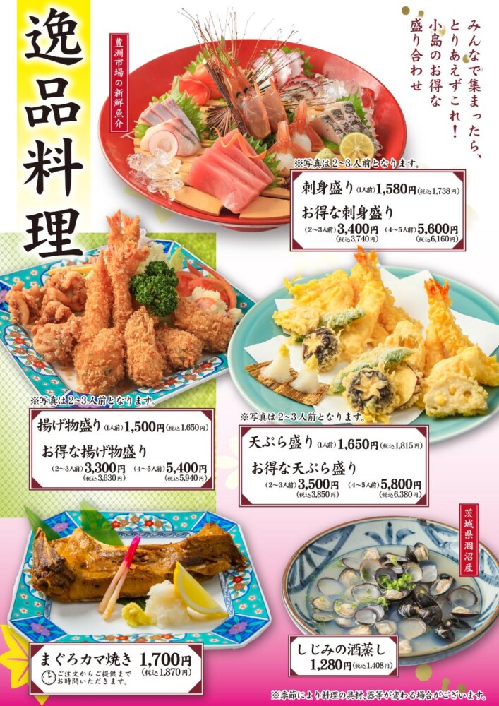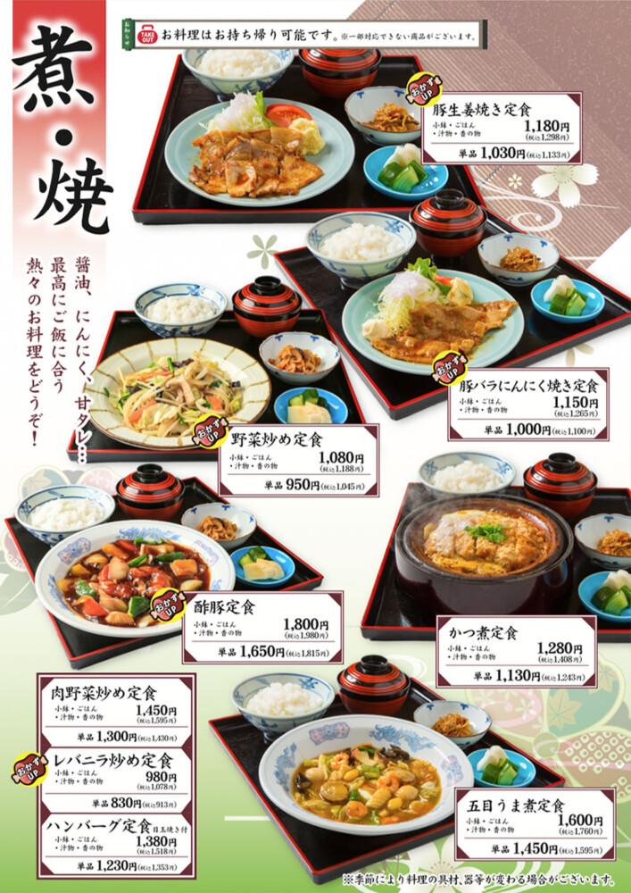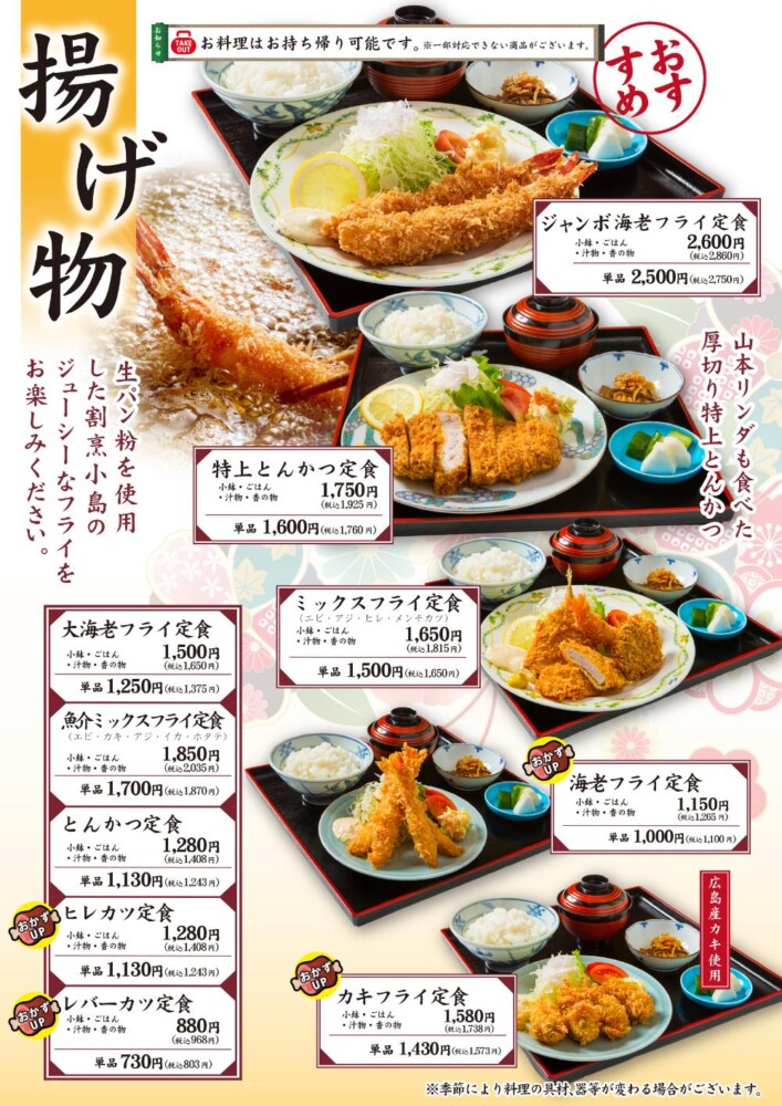 - 小島御膳、うなぎセイロ蒸し、鍋焼うどん、セットメニューはテイクアウト対象外です。
